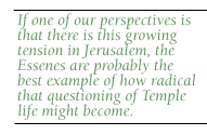 And in terms of the quest for the historical Jesus, what does the story of the Essenes tell us? What light does it cast on his life and times?